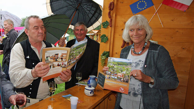 Am Rande des Stadions boten kleine Verkaufsstände Regionales und Kunsthandwerkliches an. Am Stand des Freundeskreises Reichelsheim-Jablonka konnten die Besucher Wein, Käse und Odenwälder Wurst kosten und Informationen über Reichelsheim einholen. Es zeigte sich, dass dieser Stand ein beliebter Treffpunkt war, um die alten Kontakte zu beleben und neue zu knüpfen.